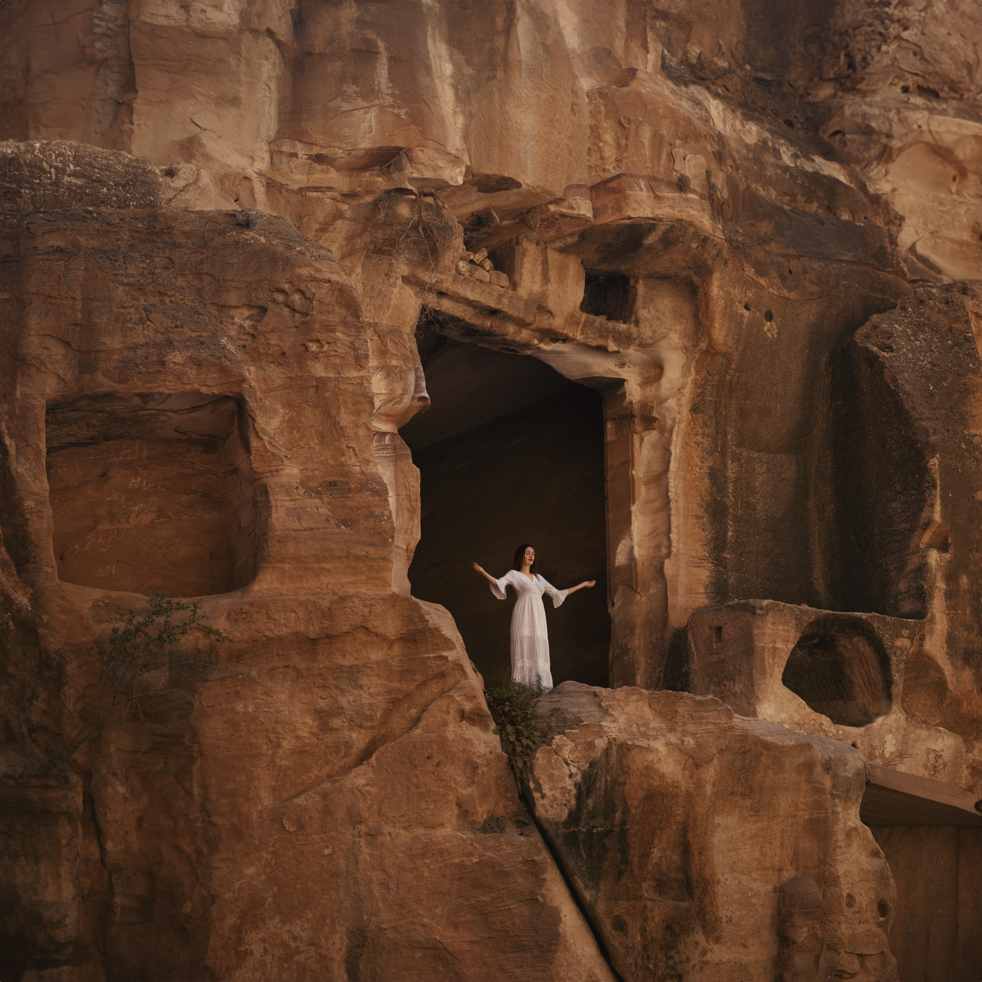 Raluca’s workflow follows a meticulous narrative arc that mirrors the structural progression of a story. This journey begins with the preparation phase, where she anchors her vision in a single concept (often a specific word or an emotional state) before sketching ideas, researching references, and carefully selecting the wardrobe, location, and lighting to match the intended atmosphere.